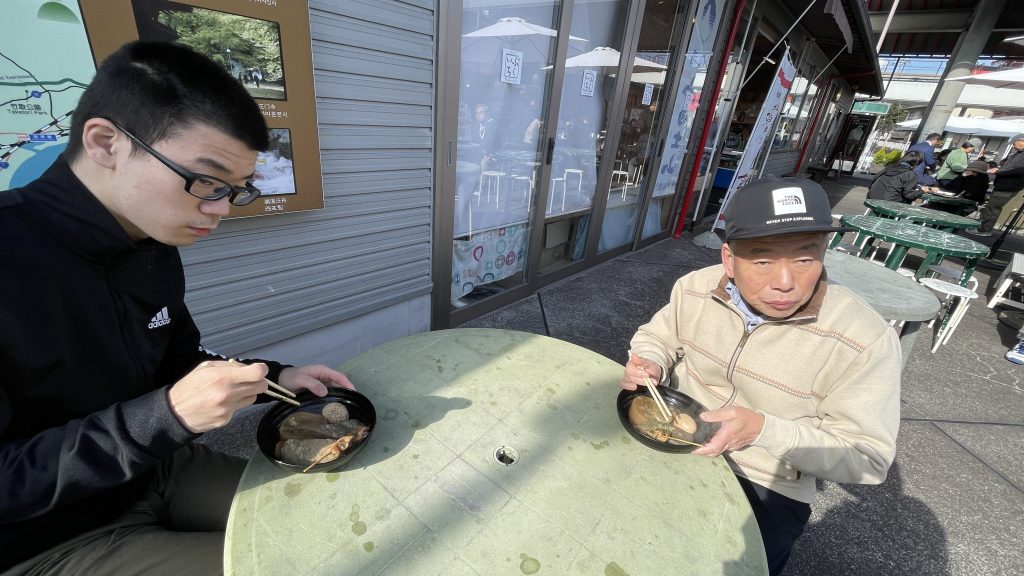 イオン富士宮で昼食、買い物のコースとお宮横丁にて昼食、買い物のコースに分かれて行いました。お宮横丁では名物富士宮焼きそばやあんみつ、静岡おでんをそれぞれメニューを選んで召し上がって頂きました。その後富士宮浅間大社まで散策してきました。