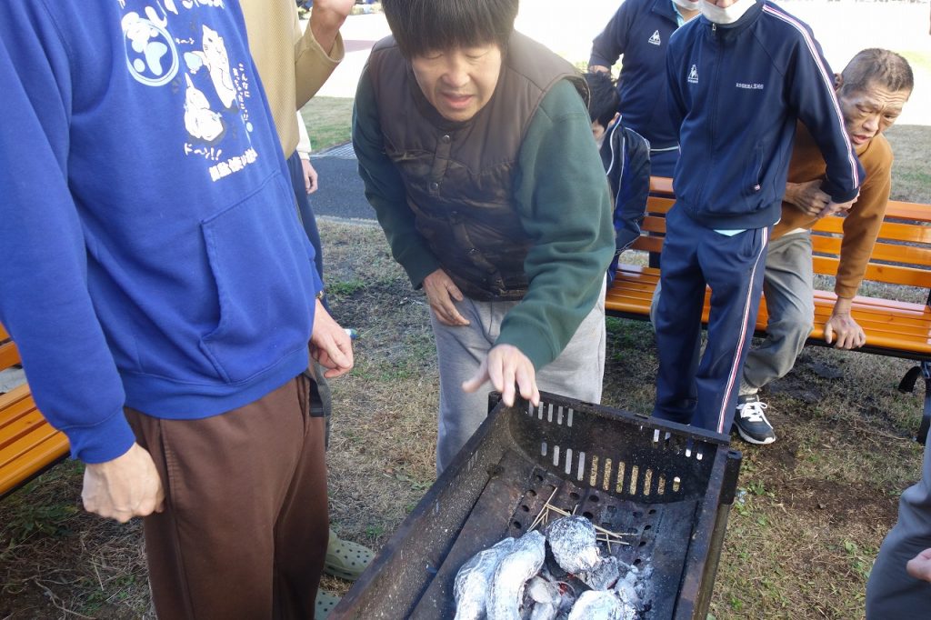 本日は男性Aグループの余暇活動で、焼き芋を作りました。