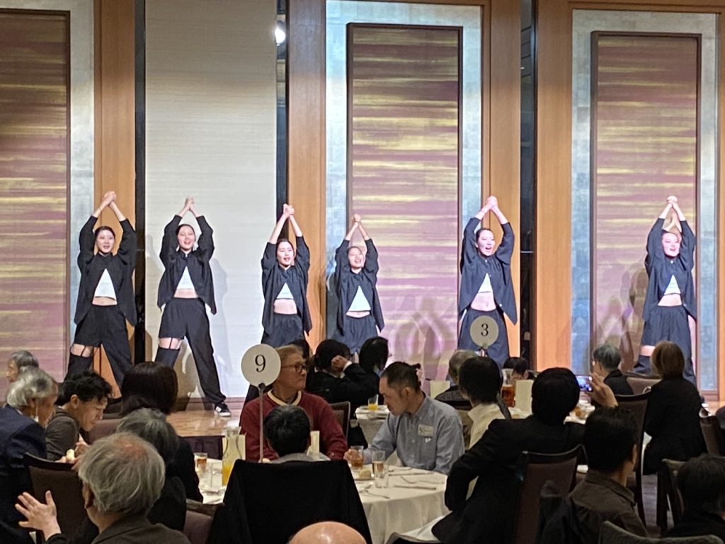 食事中にはアトラクションとして静岡県立清水西高等学校の合唱部とダンス部の学生さんに出演して頂きました。合唱部の清らかで力強い歌声と、ダンス部の躍動感あふれる華麗なダンスのエネルギーに圧倒され、大変楽しませていただきました。終演後も「素晴らしいショーだった」「感動した」といった声が多数聞かれ、記念行事に最高の彩りを添えていただきました。高校生の皆様の満足気な笑顔も拝見し、私たちも大きな喜びを感じました。