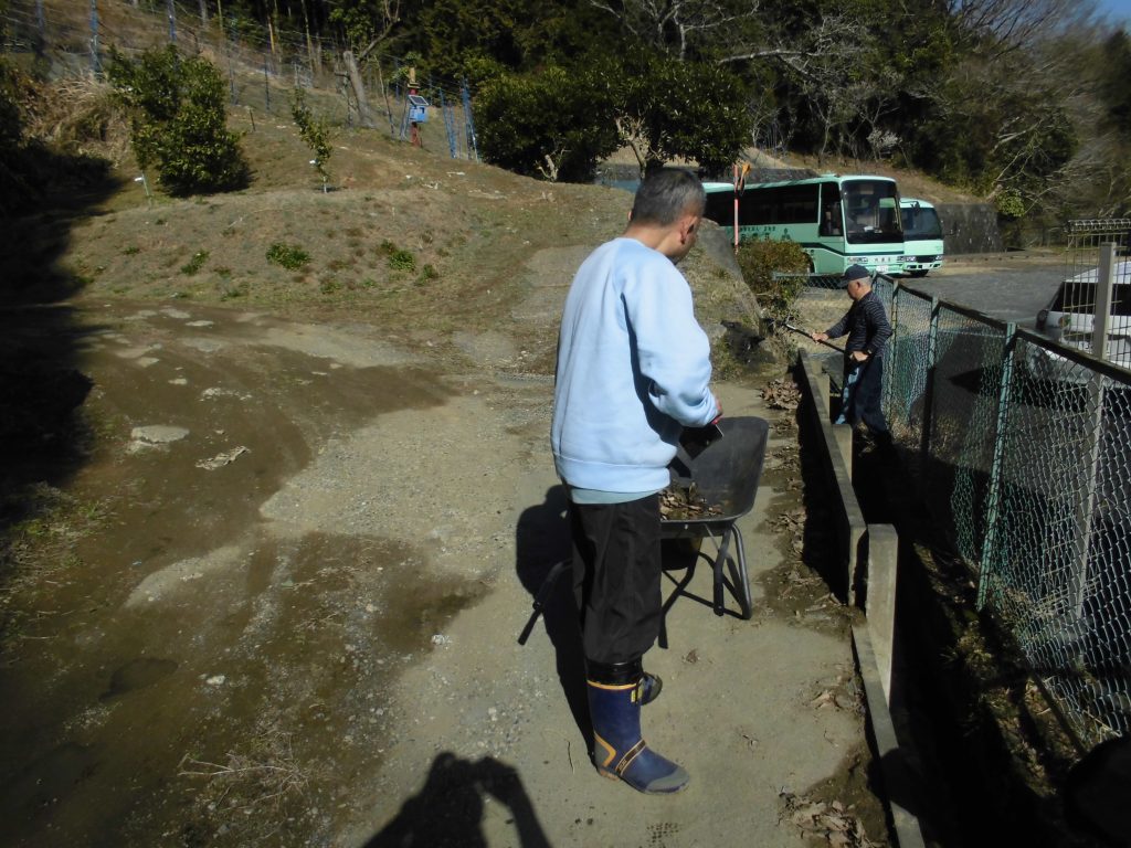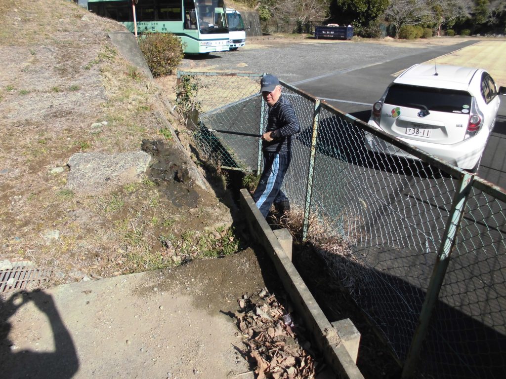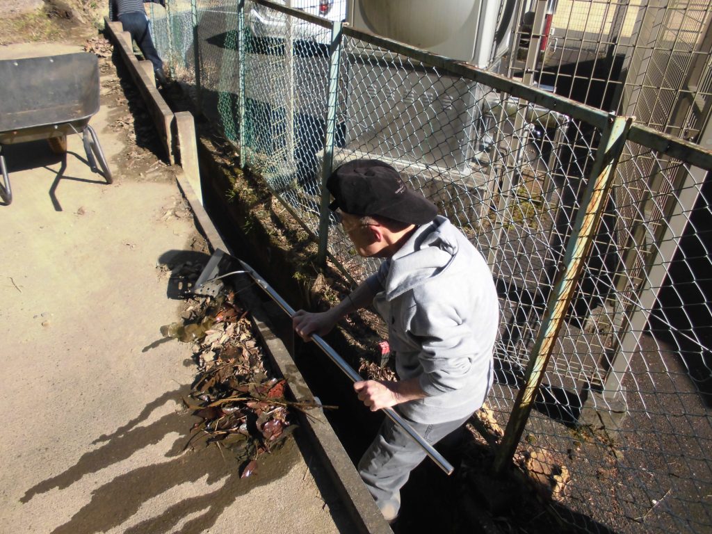 本日、ご利用者のO様、K様、F様と職員で定期清掃を行っています。雨量が少なかったので汚泥と落ち葉拾いが中心でした。暖かく汗ばむ陽気でしたが、皆さん一生懸命取り組んでいただき大いに助かりました。