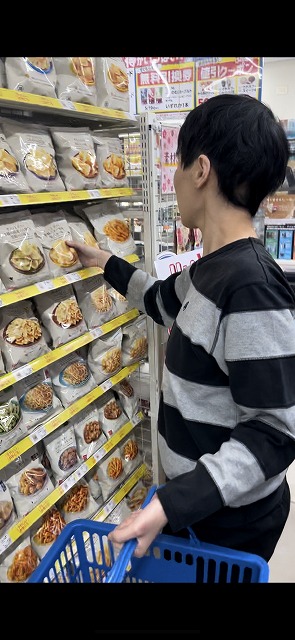 S様は宍原荘に入所されてから初めての買い物訓練でしたが、何にしようか迷いながらもポテトチップスとジュースを購入され、とても上手に買い物を行なう事ができました。