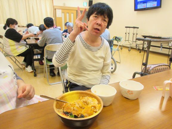 普段の食事とは異なるメニューでボリュームもあり、皆さん満足そうな様子が見られています。