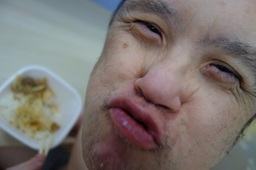 食事中も、時折指を鼻に持っていき、照れ笑いのような表情を見せるご利用者。