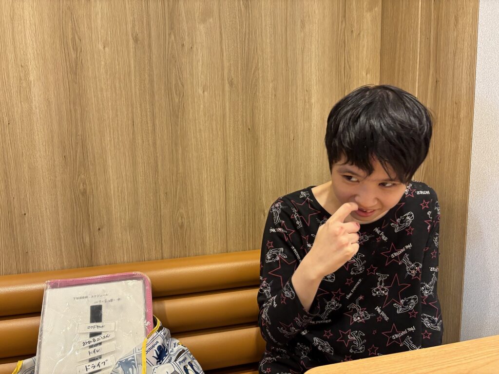 「次はマクドナルドです」と声をかけながら、ご利用者と一緒に予定を指差しで確認しました。