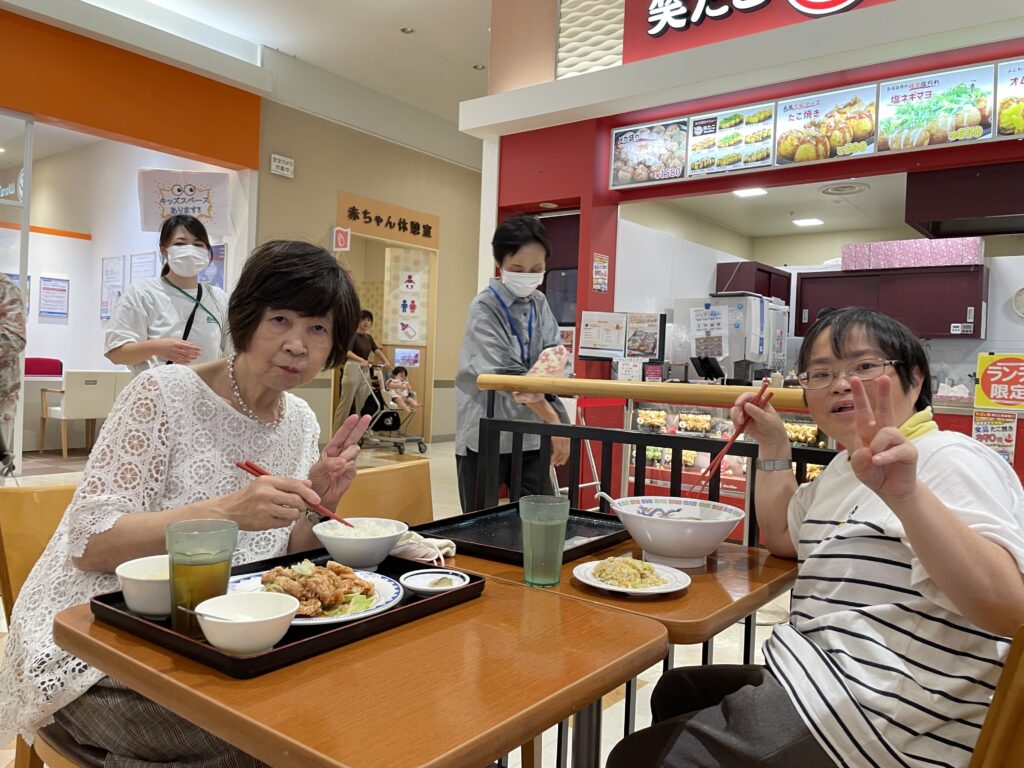 今回はご利用者に「回転すしコース」と「イオンフードコートコース」の2つのコースからお好きな方を選択してきただき、それぞれ分かれて外食を行いました。