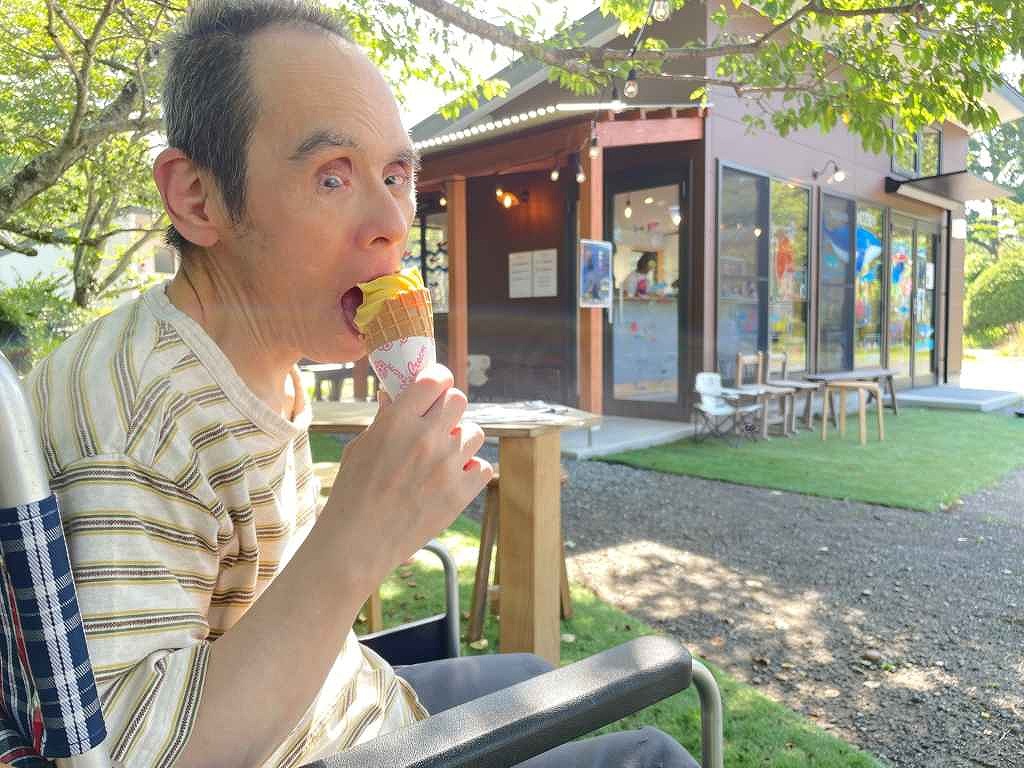 公園内のカフェ「そらのくじら」では、マンゴーヨーグルトアイス をいただきました。冷たくて爽やかな味に、思わずにっこり?