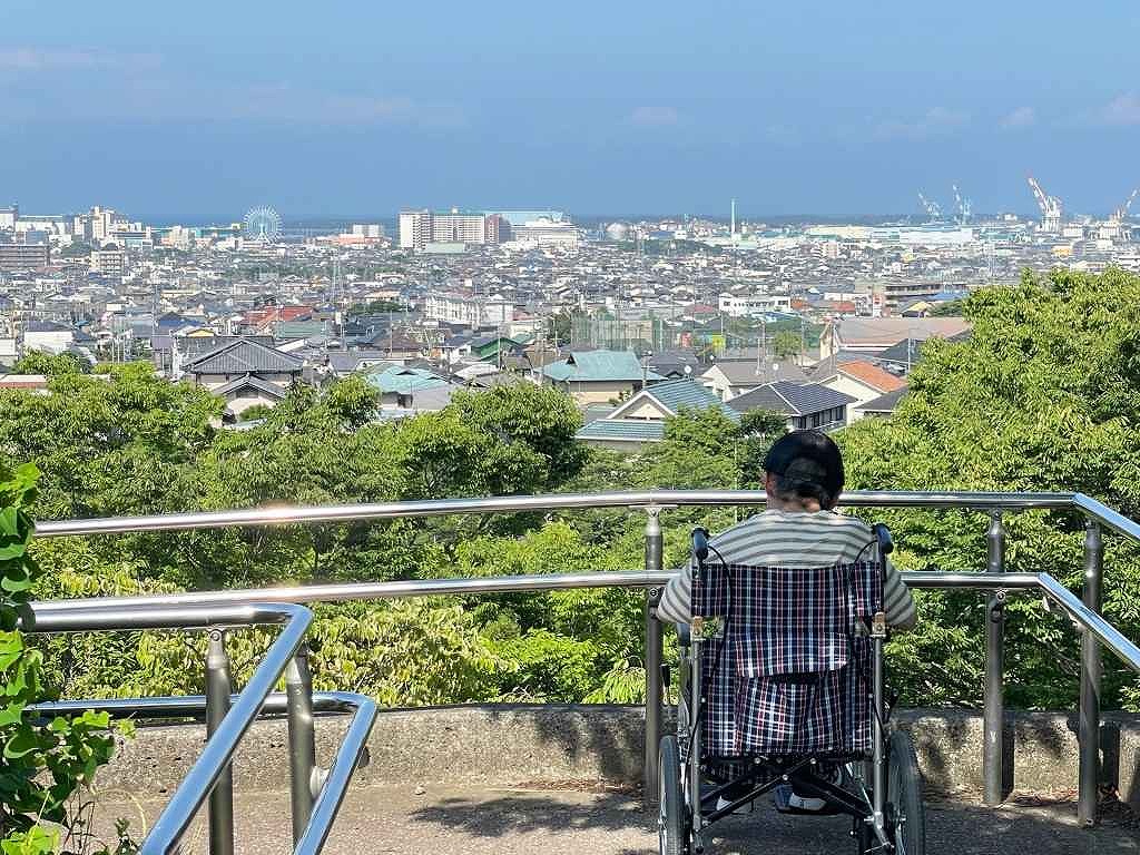 最後は展望スポットへ。清水の街と海を一望できる絶景に、利用者さんも静かに見入っていました。