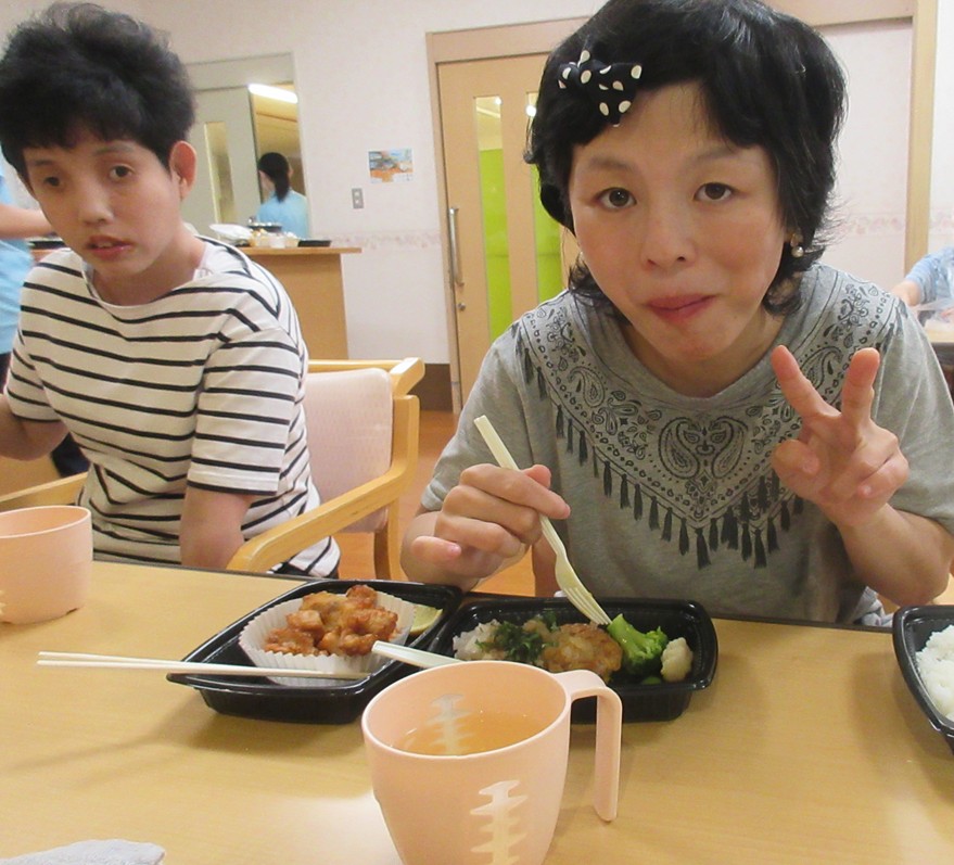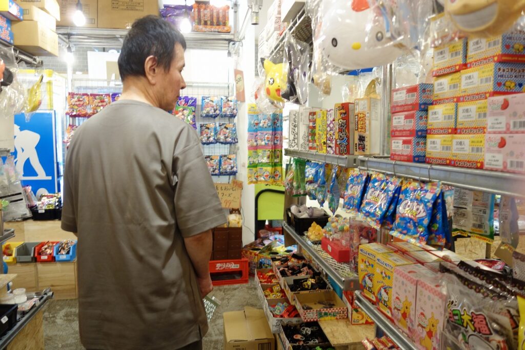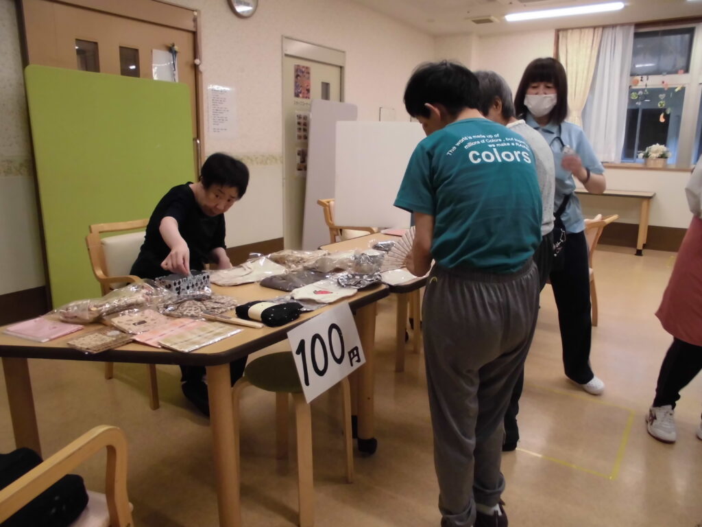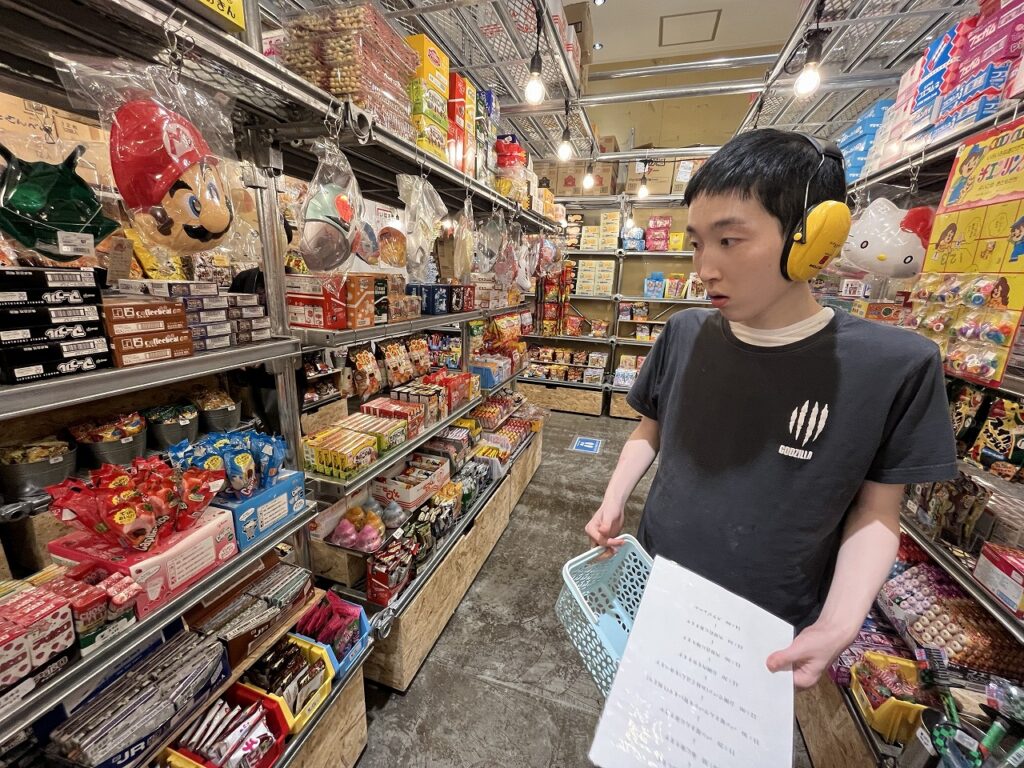 パンを食べた後は、マークイズ静岡まで行き、散策とお買い物をしています。他のグループの外出でマークイズに行った際に駄菓子屋さんが入っていたので、そこで好きなお菓子を買って頂いております。