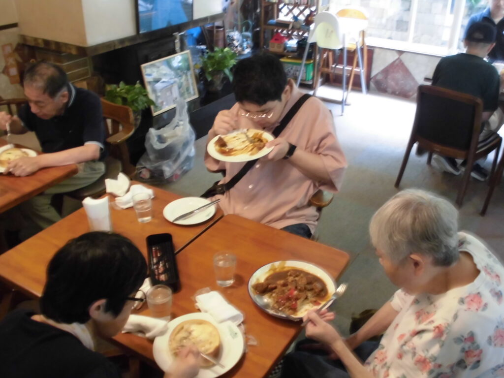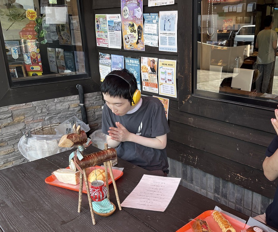 本日は、男性Aグループの小集団外出で草薙にあるマルコデュパンという石窯のパン屋さんにAさんとNさんが行って来ました。好きなものを取って頂くと少し際限が無くなってしまうので、3つ本人たちに選んでいただいてパンを購入しました。おいしそうなパンがいっぱいあり、悩む姿が見られましたが、それぞれ好きなパンを選ばれておりました。