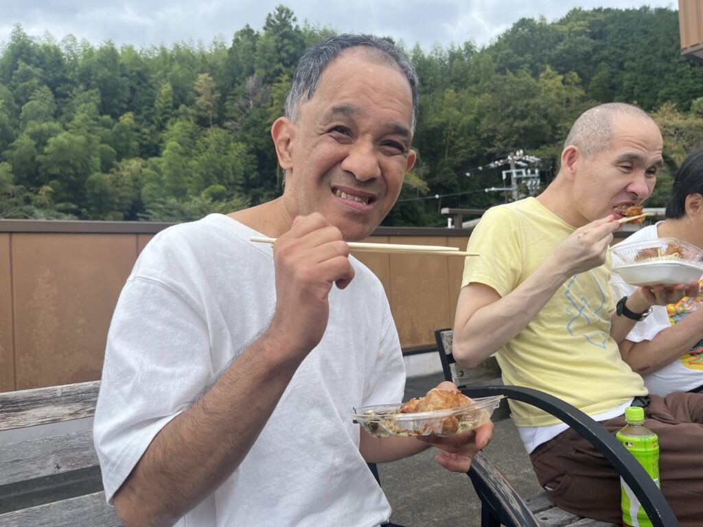 支援者とご利用者が二人三脚の様に小さくても前に一歩を踏み出す姿が描かれており、全体の色合いも玉柏会のイメージカラーに沿ってくれて、とても素晴らしい作品です。