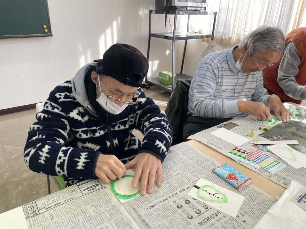 葉っぱの枠は色々な形がありご利用者様が好きな枠を選んで描きましたがそれぞれ個性が出て面白い取り組みでした。